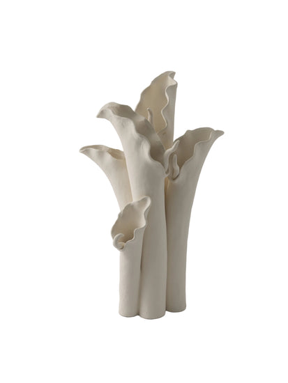 Ceramic sculpture of abstract plant forms on a white background